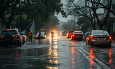 Na Marginal Botafogo, veículos foram literalmente engolidos pela água: houve registro de motorista ilhado dentro do carro.