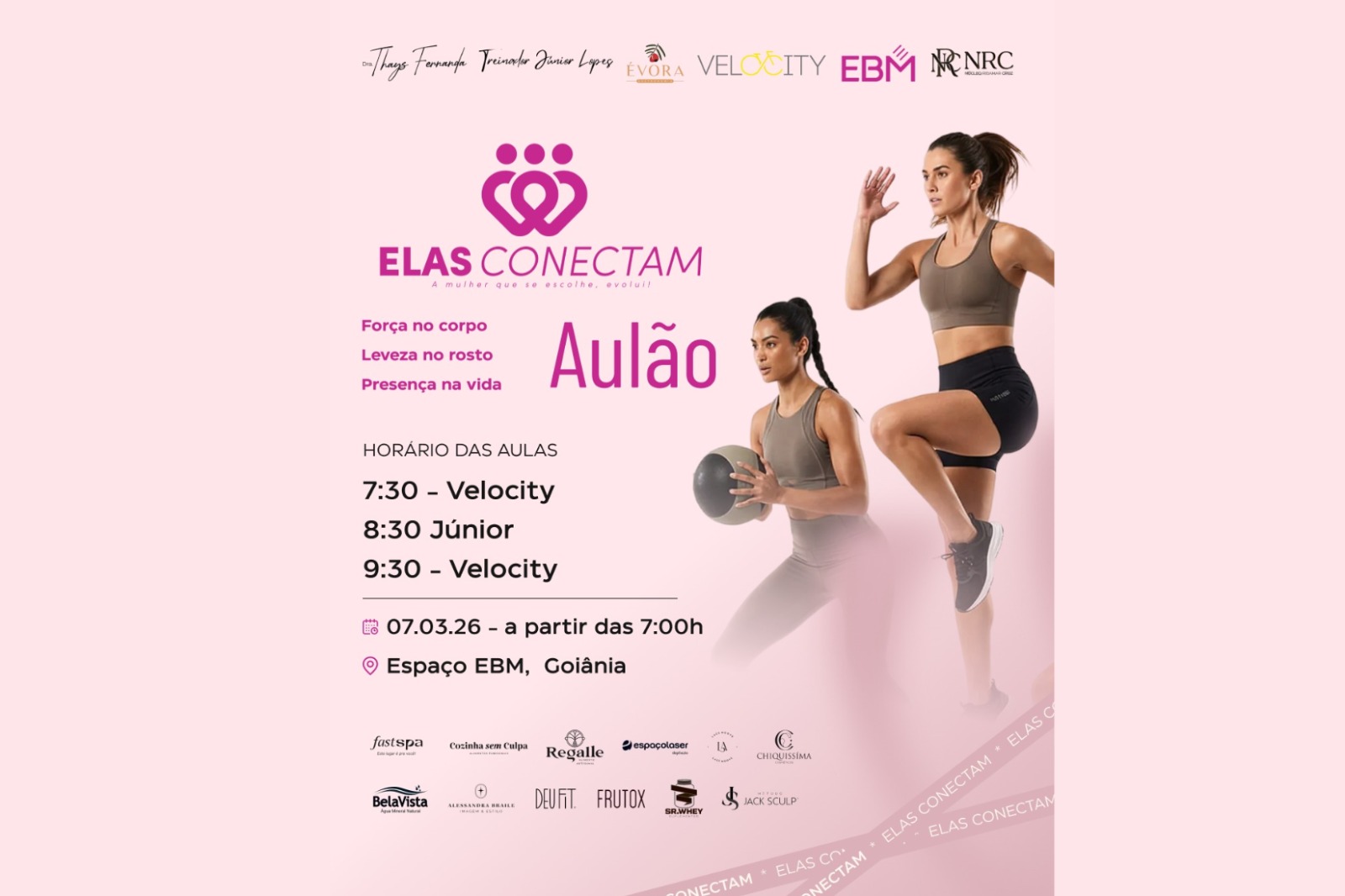 Cada sessão terá duração de 30 minutos e foi planejada para unir intensidade, desempenho e bem-estar, respeitando as particularidades do corpo feminino. A curadoria reúne profissionais reconhecidos em suas áreas de atuação, que assinam a proposta multidisciplinar do evento: